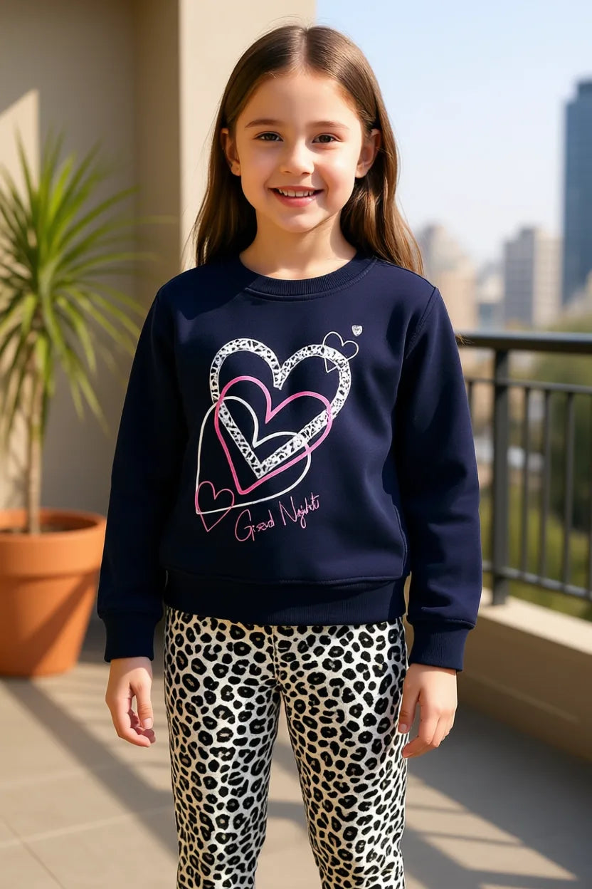 Heart Fleece Tracksuit Navy